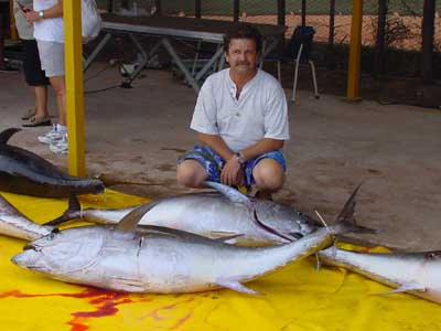 acqua catturiamo un tonno di 57 kg ed un'alalunga di 12.5 kg.
