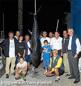 Dopo oltre due ore di combattimento, con una lenza di sole 50 libbre, il team calabrese ha issato a bordo uno splendido tonno rosso gigante di 186,400 Kg: una preda degna di una finale e che ha garantito il titolo di Campioni d'Italia 2004 al Team Soverato.