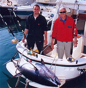 Vi scrivo per annunciare la cattura di un tonno (forse il primo di stagione2002 nell'Alto tirreno?) di circa 110 kg nella provincia di livorno, esattamente nella zona di mare che va dall'isola d'Elba all'isola di Capraia .