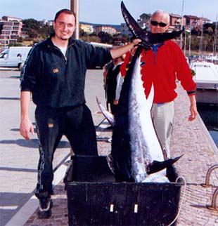 Vi scrivo per annunciare la cattura di un tonno (forse il primo di stagione2002 nell'Alto tirreno?) di circa 110 kg nella provincia di livorno, esattamente nella zona di mare che va dall'isola d'Elba all'isola di Capraia .
