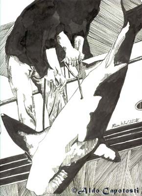 Ora, in attesa di tempi migliori, per il momento pesco così, con i dipinti a china da me realizzati e riguardanti appunto la pesca d'altura,