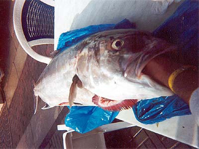 con barche a motore, ma alla fine dopo l'ennesima fuga del pesce