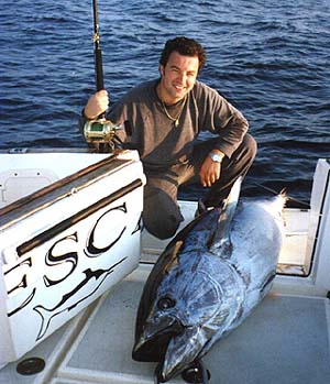 80 lbs innescata a ciuffo con esca a 35 mt. di profondità,