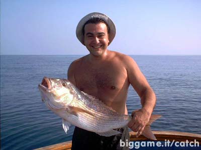 Passano appena venti minuti ed ecco la prima allamata, Stefania e Barbara esultano e saltano sulla barca di Michele, lo tiriamo su e lo poggiammo sul fondo della barca. Ci rendiamo conto che non è affatto piccolo, 7 Kg almeno.