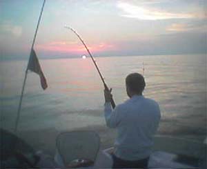 Una barca vicino a noi cattura un serra, passo alla sua sinistra