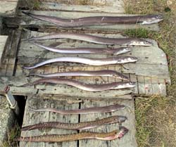 I sette gronghi e le due murene, le abbiamo prese col palamito il giorno dopo. Le dimensioni non sono enormi ma ci sembra comunque un bel cestino.