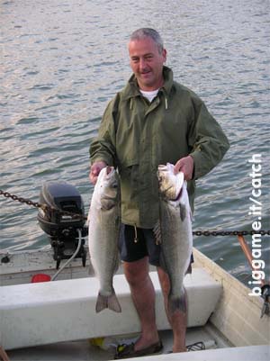 Le spigole nelle foto, di cinque chilogrammi ciascuna, sono state catturate con il mio amico Andrea nella zona di Livorno usando come esca le acciughe in una mattina della prima settimana di settembre, a dieci minuti di distanza l'una dall'altra tra le sei e le sette del mattino, subito dopo un temporale.
