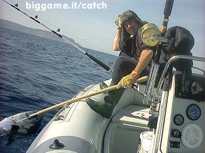 Il gommone, é un mezzo che facilita il combattimento in particolare a prua, nonché il recupero della lenza dopo la prima fuga, anche perché praticamente il tonno, se grosso, traina il gommone stesso.