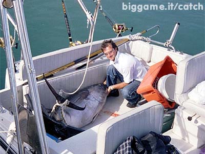 Cattura di un tonno di 120 kg eseguita il 27 Settembre 2003, al largo di caorle a circa 30 miglia, esca sardina, canna luxor italcanna 80 libbre mulinello gladiator.