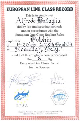 europeo sulla classe 16 lbs. sul pesce lampuga (coryphaena hippurus).