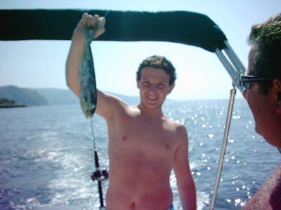 Ecco il piccolo Simone che prova e cattura anche: una piccola riccioletta ed una lampuga.