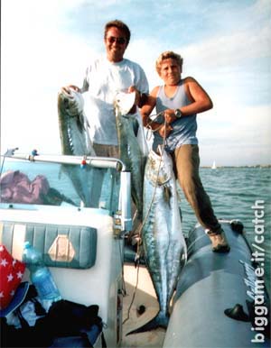 Dopo quindici minuti di combattimento estenuante in stand up, con i consigli di Lupus, riesco ad avvicinare la leccia sotto bordo, ma appena vede il gommone effettua una nuova fuga. Continuo a lavorarla fino ad avvicinarla a portata di raffio e mi rendo conto che è enorme. Tirata a bordo, quasi mi metto a piangere dall'emozione: alla bilancia il peso risulta di 18 kg.