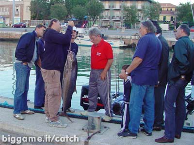 Al momento della pesa, si radunano intorno gli amici di pesca e, testimoni, la bilancia che massimo arriva a 20 Kg, non riesce a darci il responso esatto.