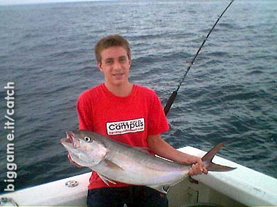Emanuele, mio cugino nonché membro dell'equipaggio, ai motori ed io alla canna, mentre le potenti fughe del pesce fanno ben sperare per le sue dimensioni; dopo circa 20 minuti il deciso colpo di raffio di Emanuele porta a compimento la cattura,finisce cosi in pozzetto una bellissima ricciola di 8 Kg ; dopo averla slamata facciamo qualche foto di rito con il telefono (mai portare la macchina fotografica a bordo) .