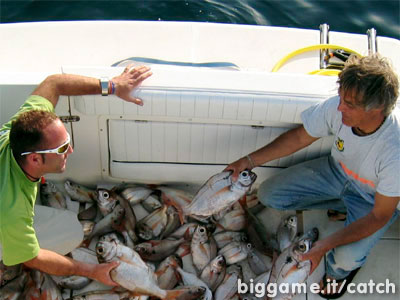 Risultato della pescata tanti KG di OCCHIONI con esemplari che