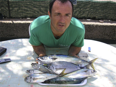 13,30 con 3 SGOMBRI. Al rientro immortalai il pescato con