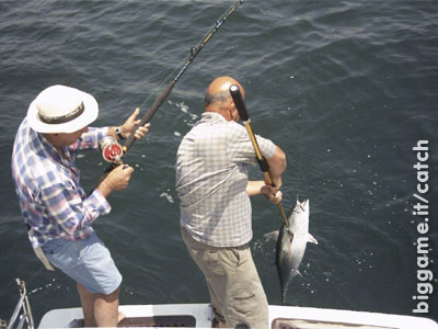 e picchiate, il primo pesce di 7, 8 kg circa è in barca.