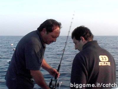 L'amico esperto mi aiuta a capire le fasi di recupero, mi tremano le mani, ma il terminale fatto da Enzo e l'esca approntata da Rino fanno un ottimo lavoro!
