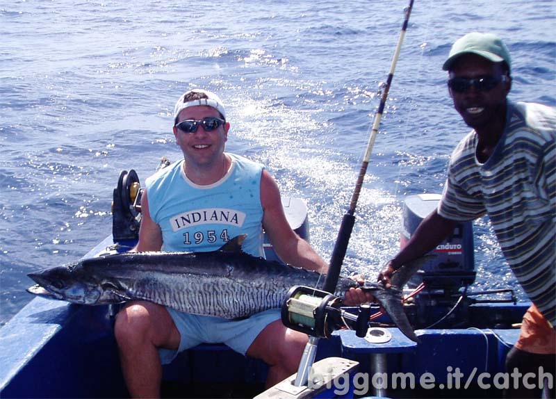 Ora il morale è alle stelle e già appagati continuiamo la pesca con la cattura di altri King notevoli e svariati strike andati a vuoto, ma a noi non importa, non siamo in Italia dove di pesce ce n'è sempre meno e ci si arrabbia con i pesciolini persi, qui siamo in Africa, il paese dell'abbondanza, dove mai la pesca indiscriminata, le reti di circuizione e i tecnologici pescherecci potranno rovinare la fauna di questi generosi fondali…ci spero sennò è proprio finita!