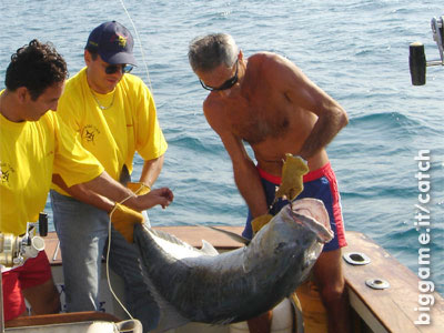 dalla mole e sua conformazione, il pesce arriva alla barca.