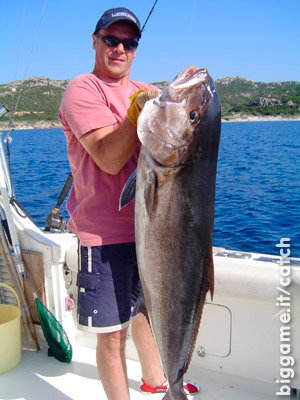 Dopo circa 35 minuti di combattimento si vide la sagoma del pesce, un bella ricciola del peso di 33 kg.
