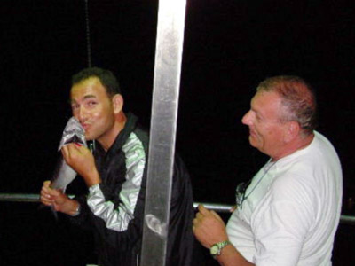 pesca nella barca, e anche se eri a poppa, eri sul lato