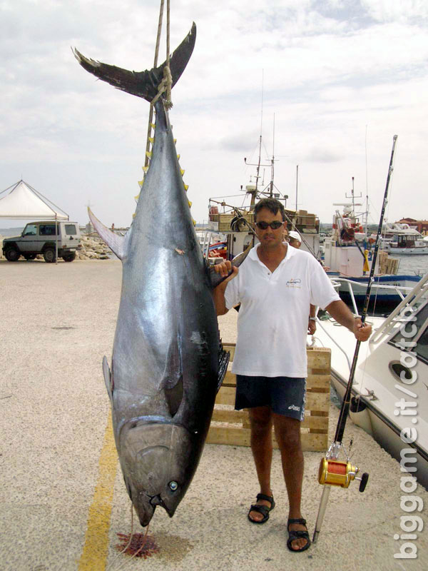 Oggi tonni con queste taglie sembra stiano scomparendo dai nostri mari, tuttavia però capita e per fortuna, che gli appassionati di pesca come siamo tutti noi abbiano ancora la fortuna di imbattersi in catture come questa.