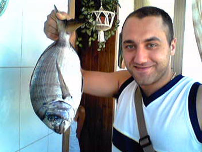 vede luccicare dal fondale, era un bel sarago di 1,400 grammi,