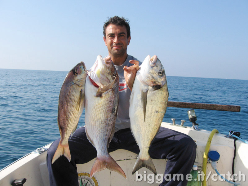 Novembre '05 San Felice Circeo, una splendida mattinata io e il mio amico Daniele al sorgere del sole siamo pronti con canne innescate a seppia viva e la nostra pazienza sarà ripagata da un'insolita cattura (neanche tanto insolita) una bella orata di 6.5 Kg accompagnata da un bel dentice di 5 Kg abbondanti e un altro di 3.5 Kg.