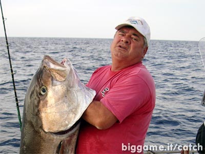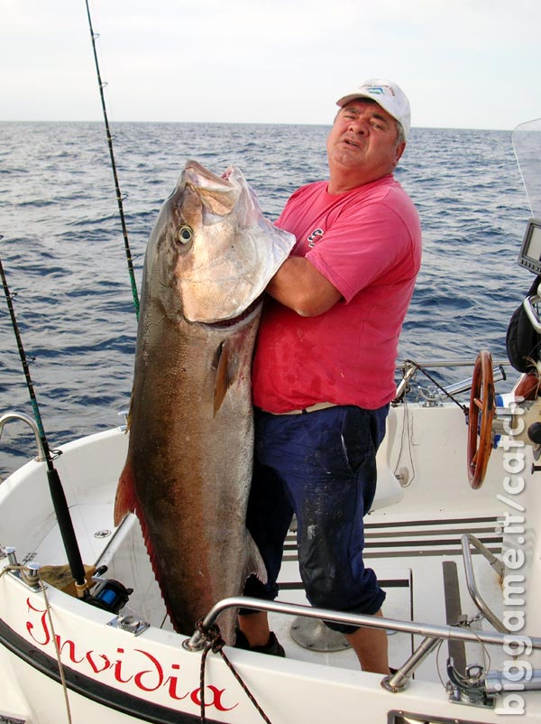 Carlo Bortolotto con una ricciola di ben 52 kg, pescata