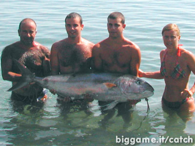 Al peso del campeggio risulterà di 33 chili. Ha inghiottito tutti i tre ami e li troveremo allamati nello stomaco. Il bilancio delle vacanze 2005 si concluderà con dieci ricciole di cui una da 17 kg, una da 33 kg e le altre con peso variabile da 8 a 10 kg oltre una cernia da 7,5 kg.