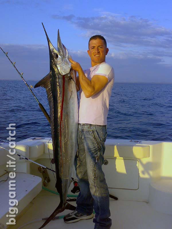 Aguglia imperiale di 42 kg pescata a largo di ostia da Danilo Biancifiori e Enrico Petrilli in traina con rapala 10 cm a 12 miglia