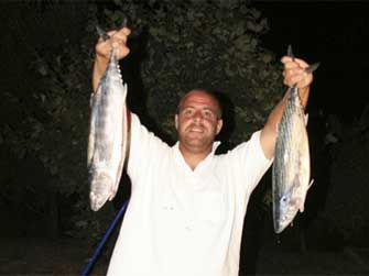 apparire sotto la barca e dietro di lui una stupenda palamita