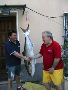 enorme è una ricciola grida Nando prendi il raffio,