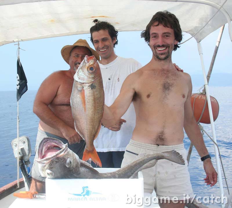 dopo un po' di lotta, salta in barca uno splendido Besugo,