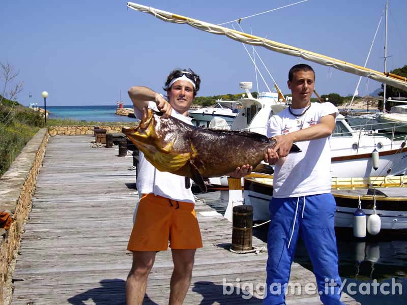 Due cernie brune, rispettivamente di 12.5 e 18.5kg. Catturate