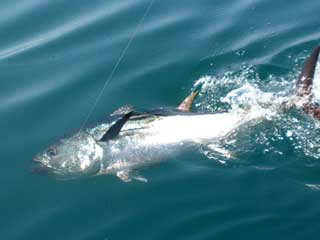 Tutti tonni liberati togliendo l'amo dall'angolo della