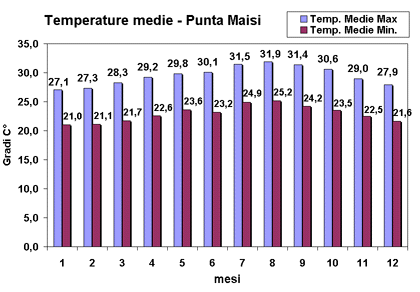 Le sue variazioni vanno quindi dai 24° C circa dei mesi più