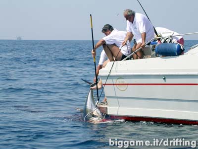 della presenza del tonno dopo alcune ore di pesca in drifting