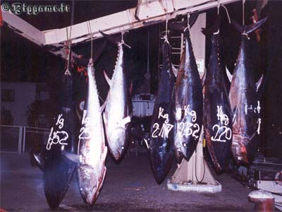la lenza, ed erano tutti tonni Giganti fra i 250 e 350 Kg.,