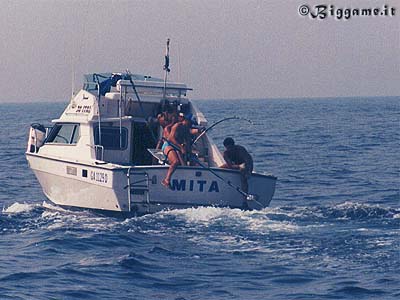 la barca che si vuole avvicinare al pesce è aiutata