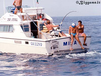 il pesce si dibatte da tutte le parti, lo skipper corre