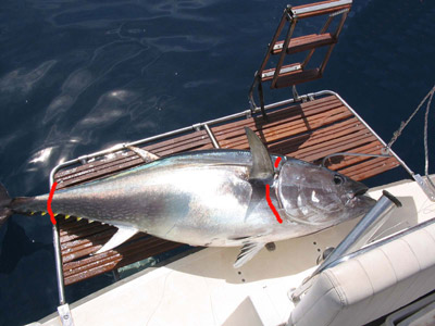 Tagli per il dissanguamento ( Tonno in sosta fuoribordo »» )