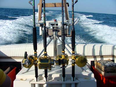 ci ritroviamo con 3 canne in pesca, con le esche a 40 metri