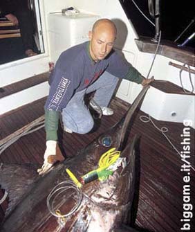 come tutti i pesci cui dà la caccia, fissato da pesanti