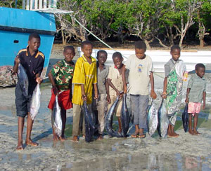 le lenze su una cima posta in mare dai pescatori locali, via così