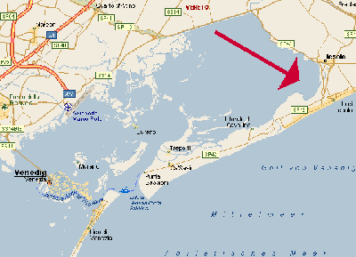 per circa 15 km., dall'antica foce del fiume Piave, ora del Sile,