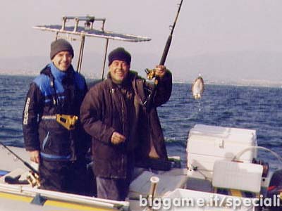 Bebo Luca col figlio Maurizio mostrano l'esca utilizzata