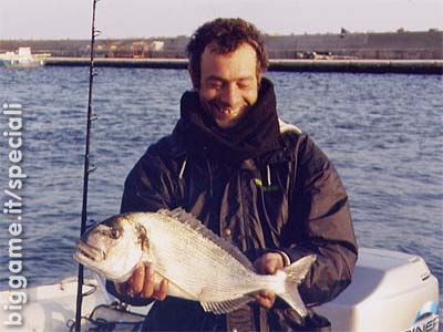 Nicola Cocco con l'orata di kg 2,200 pescata insieme a Taccini e Nicolai