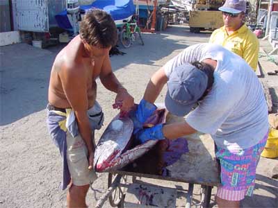 pulito in barca e con il quale il secondo tonno pescato aveva